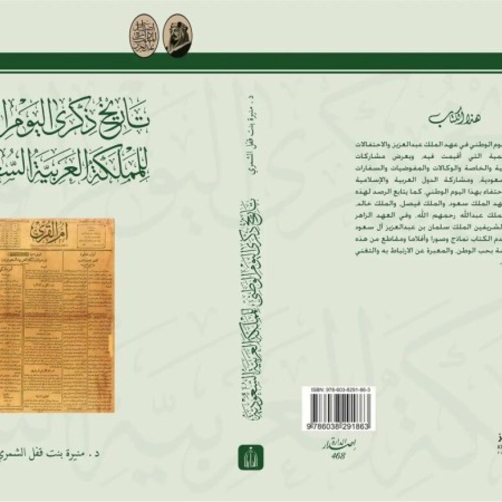 سعودی عرب کے ’کنگ عبدالعزیز فاؤنڈیشن فار ریسرچ اینڈ آرکائیوز‘ نے یوم الوطنی کی تقریبات کی تاریخ کو دستاویزی شکل دیتے ہوئے ایک کتاب شائع کی ہے جس میں مملکت کے بانی شاہ عبدالعزیز کے زمانے سے خادمِ حرمین شریفین شاہ سلمان کے دور تک کا احاطہ کیا گیا ہے۔