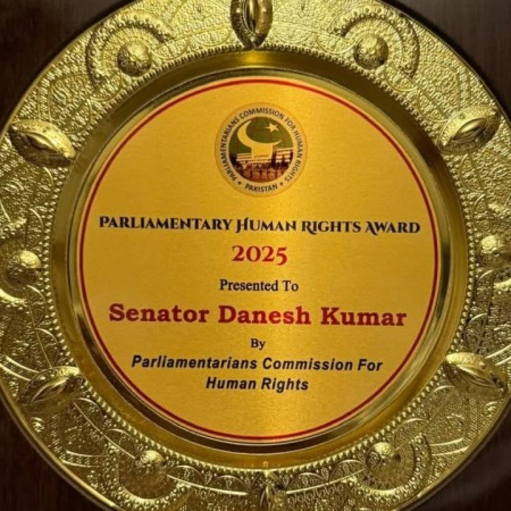 اسلام آباد: پارلیمنٹیرینز کمیشن فار ہیومن رائٹس (PCHR) کے زیر اہتمام اسلام آباد میں منعقدہ ایک پروقار تقریب میں سینیٹر دنیش کمار کو Parliamentary Human Rights Award 2025 پیش کیا گیا۔ یہ اعزاز انسانی حقوق، مذہبی آزادی اور پاکستان میں اقلیتی برادری کے آئینی حقوق کے تحفظ کے لیے ان کی قابلِ قدر پارلیمانی خدمات کے اعتراف میں دیا گیا۔